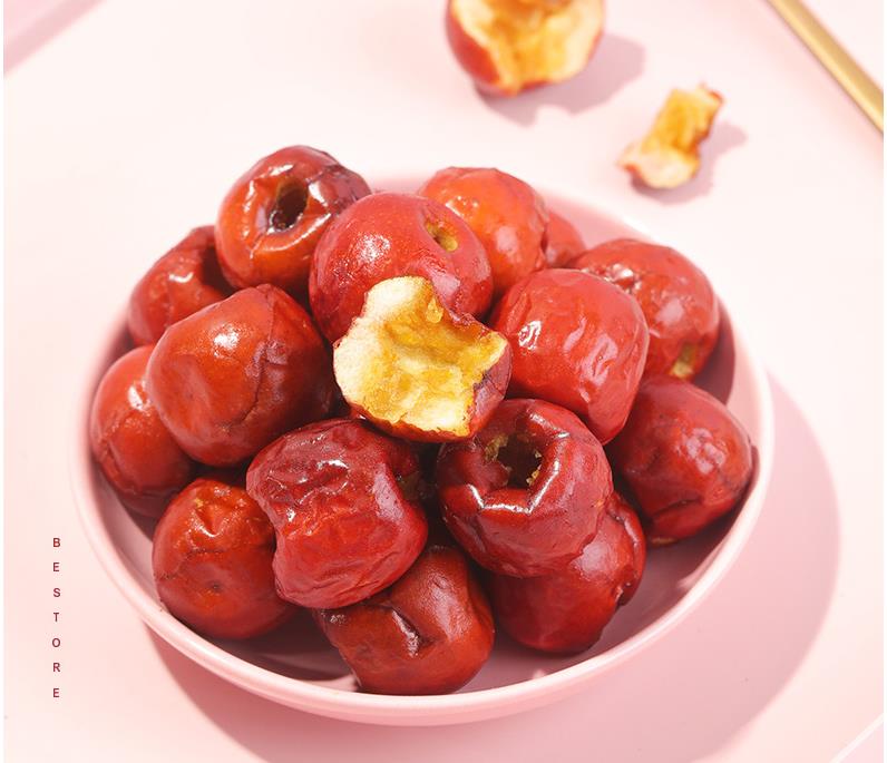 其次是什么时间将红枣放入烘干机也是个关键的问题,有些客户烘干后的枣出现掉渣,或者烘干的枣不脆甜等问题,这就是红枣放入时间没有掌控好。烘干房是需要提前进行预热的,只有提前预热,放进去的红枣才不会因为内外温差大导致“外焦里嫩”的情况,在红枣前期水分大量蒸发,内部糖分在生物酶的作用下充分转换,口感变甜,在红枣烘干后期,红枣内外部游离水已大量蒸发,蒸发速度降低;环境温度对枣果内部水分蒸发的作用降低,同时枣体内外部干湿度的差异扩大,内部水分自然往外部渗透、蒸发。在这个阶段应降低环境温度,减低温度对红枣水分蒸发的作用,使枣果内外部干湿度差距保持在合理的范围内,红枣整体内外部蒸发平衡。红枣水分缓慢蒸发、内外蒸发平衡,是保持红枣果形重要的因素之一。
